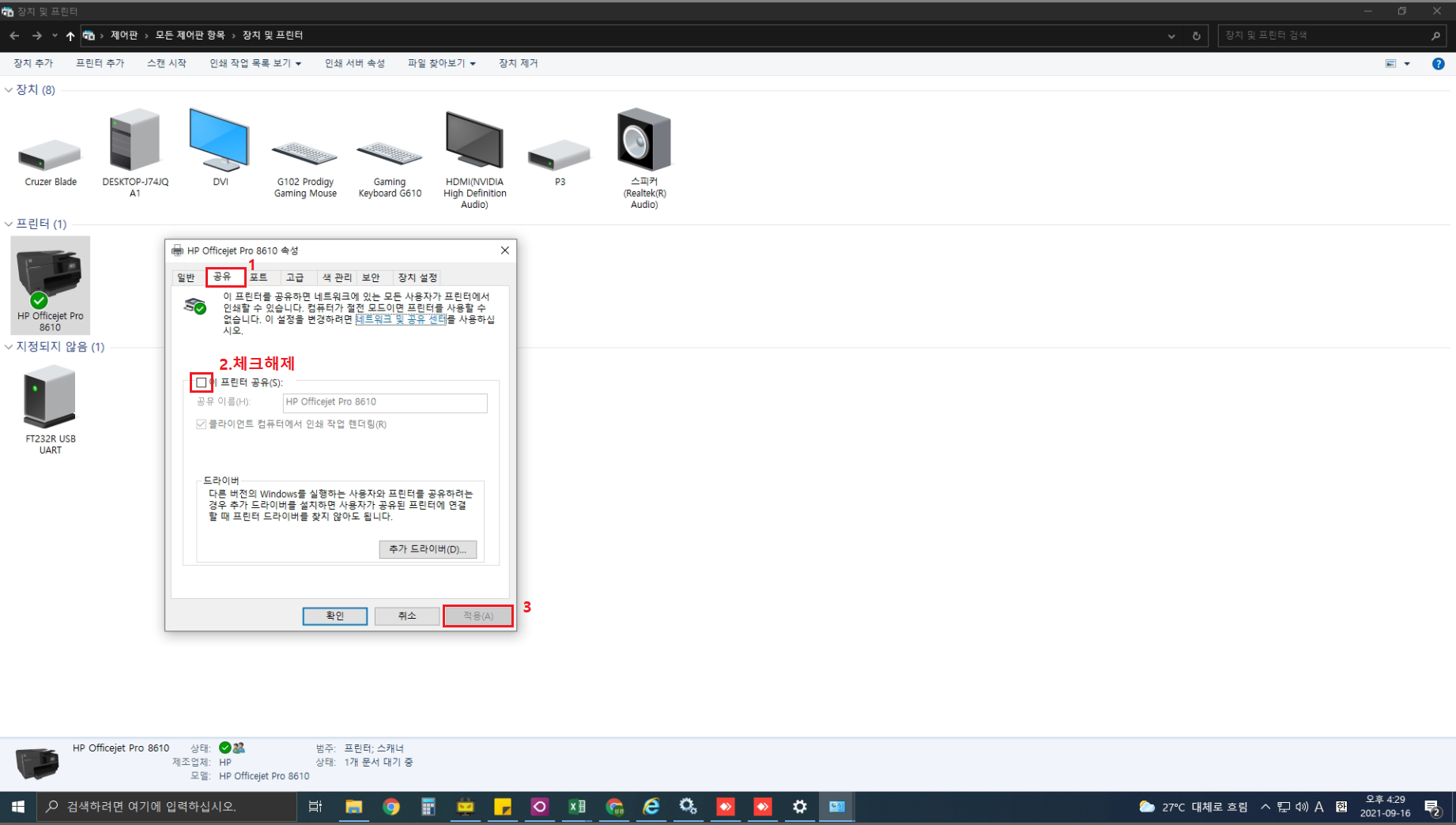 업데이트후 프린트공유가 안되실때에는 순서대로 진행하시면됩니다