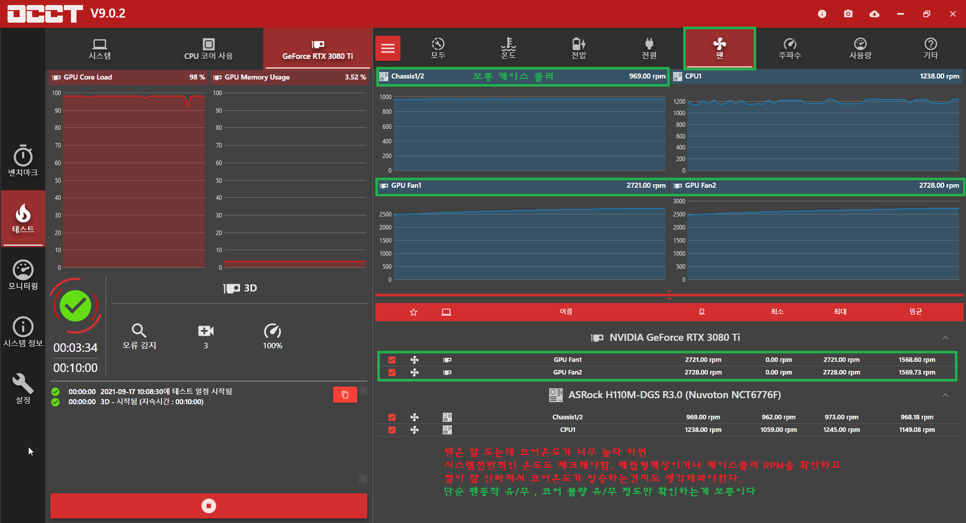 팬RPM은 정상작동하는데 코어온다가 미친듯이 올라가고 내려오질않는다면