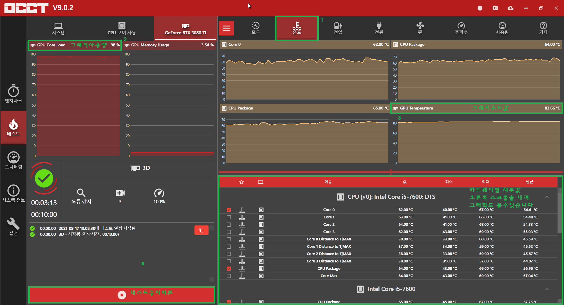 주로 그래픽카드 점검을 목적으로 사용하니 그래픽만 설명하겠습니다