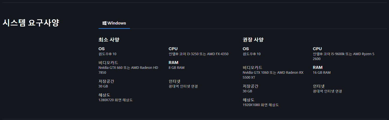 디아블로2 레저렉션 공식홈페이지에 나와있는 사양입니다